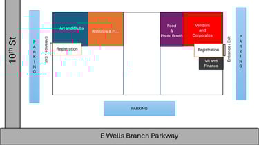 We are so glad you’re here to witness the power of Science, Technology, Engineering, Art, and Math. Tonight is about sparking curiosity, exploring the unknown, and—most importantly—having fun. [ Map and sections for each both more in detail below]